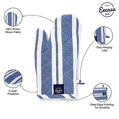 Encasa Homes Long Forno Microwave Guanti Guanti Guanti da Forno (2 pz Set) per Cucina Cucina e Cottura - Resistente al Calore, Spessa e sicura - Blue Stripes Franca