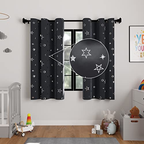 Encasa Homes tende oscuranti stagnola d'argento stampato per cameretta, Blocchi 85% della luce, del suono e di calore tende riducente con 2 pannelli di dimensioni 113 x 183 cm - Star Grey