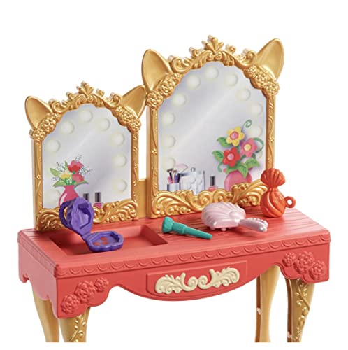 Questa toletta ha dettagli artistici, un doppio specchio e può ospitare due.