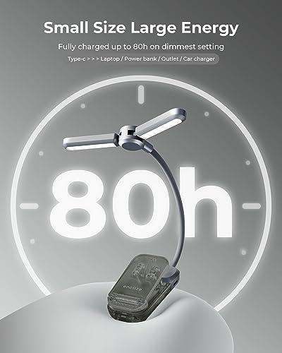 Enclize Luce da lettura a LED, luci da libro ricaricabili per leggere di notte a letto, faro regolabile a 180° - grigio argento
