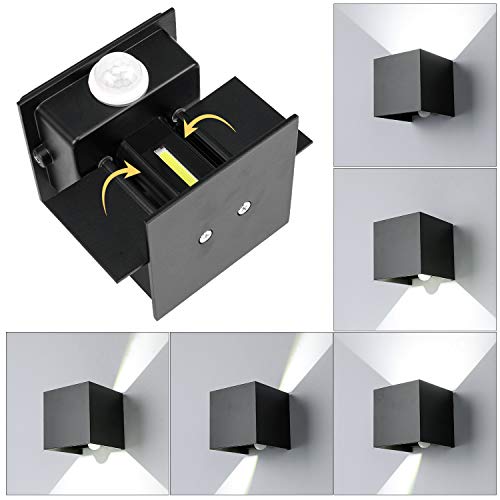 ENCOFT 12W Applique da Parete Esterno Interno con Sensore di Movimento Crepuscolare LED, Lampada da Parete a Luce Bianco Freddo 6000K Angolo Su e Giù Regolabile, IP67 Impermeabile Nero