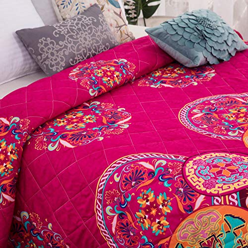 ENCOFT Copriletto coperta da soggiorno estivo Microfibra trapuntato patchwork(150_x_200_cm, rosa rossa)