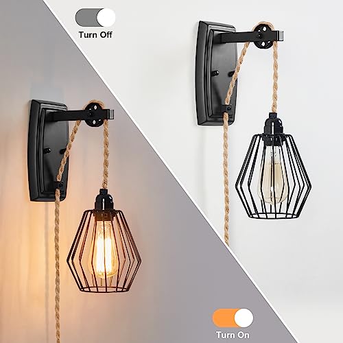 ENCOFT Lampada da Parete Interna con Interruttore Dimmerabile e Presa, Cavo di 4m, Plug-in Applique da Parete Interno Gabbia Industriale, Vintage E27 Luce Illuminazione da Muro per Soggiorno