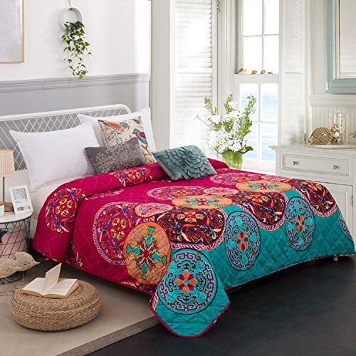ENCOFT 3 pezzi Copriletto coperta da soggiorno estivo Microfibra Double trapuntato patchwork (230_x_250_cm, rosa rossa)