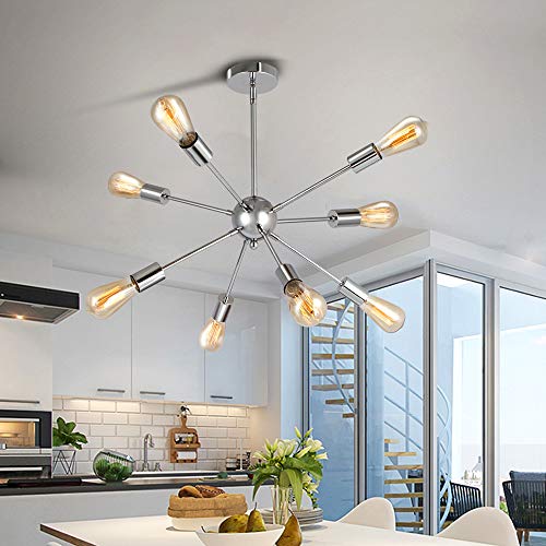 ENCOFT Sputnik Lampadario Moderno Lusso Lampada a Sospensione 8 Luci Base E27 Soggiorno Camera da Letto, Cromo Senza Lampadina