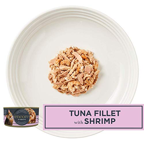 Encore - Cibo per gatti 100% naturale, tonno con gamberetti, in brodo di latta, 70 g (confezione da 16)