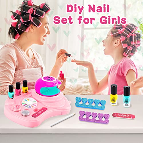 Kit Salone per Unghie per Ragazze: Penna per Nail Art*1, Unghie Finte Tinta Unita*3, Separatore per Dita dei Piedi*2, Polvere Glitter*2, Paillettes*2, Asciuga Unghie (Batteria Non Inclusa), Lima per Unghie, Le Ragazze Possono Divertirsi Usa la tua immaginazione e creatività per progettare la tua nail art.