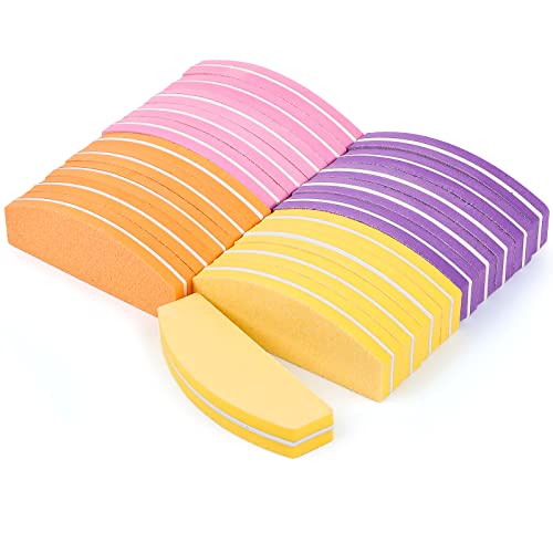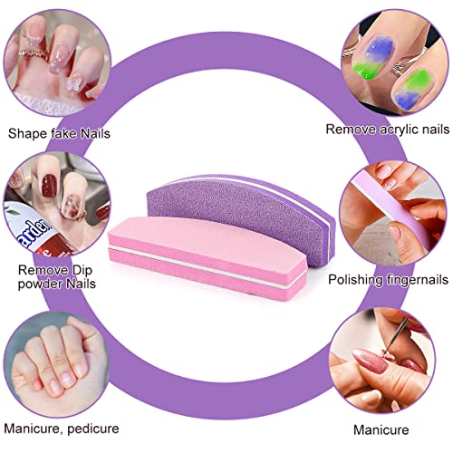 ♥ 【Buffer per unghie facile da usare】 Il tampone per unghie ha una forma a mezzaluna, che lo rende più facile e comodo da tenere e manovrare. Il materiale bianco al centro del tampone mantiene la sua forma. Il contorno a forma di mezzaluna si adatta all'interno dell'unghia, può lucidare il gel e levigare meglio la superficie dell'unghia.