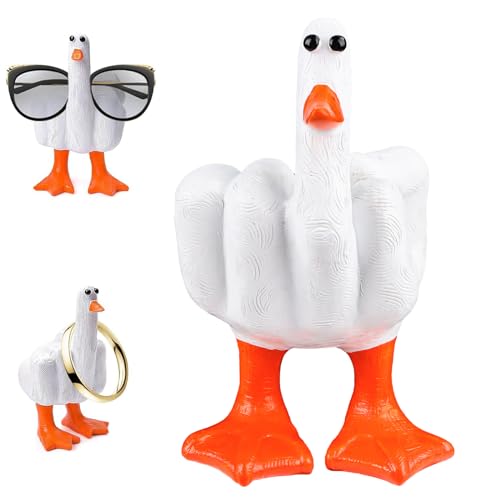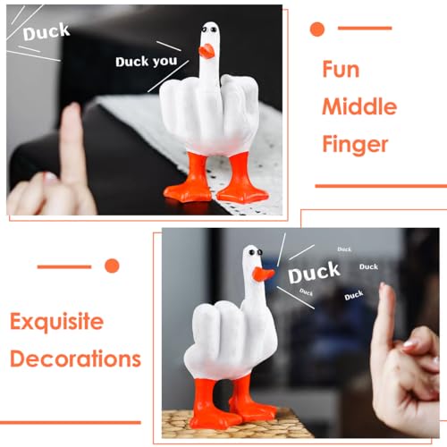 Encuryna Statua d'anatra a dito medio, anatra in resina, statuetta in resina, divertente statua di anatra, scultura artistica, decorazione per casa, ufficio, desktop, idea regalo