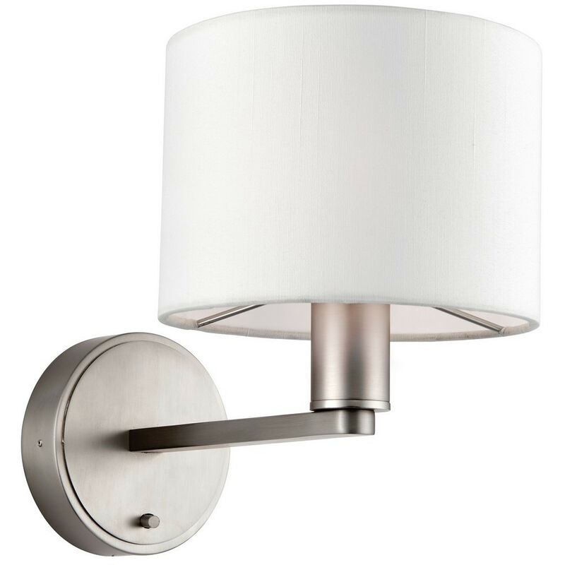 Endon - Applique da parete per interni a 1 luce in nichel opaco, finta seta bianca vintage, E14 | Finitura: finta seta bianca vintage, nichel opaco | Materiale: tessuto, acciaio | Classificazione IP: IP20 | Altezza (cm): 20,2 | Larghezza (cm): 15 | Sporgenza (cm): 23,3 | Numero di luci: 1 | Tipo di lampada: E14 | Lampadina: Golf | Potenza (max): 40