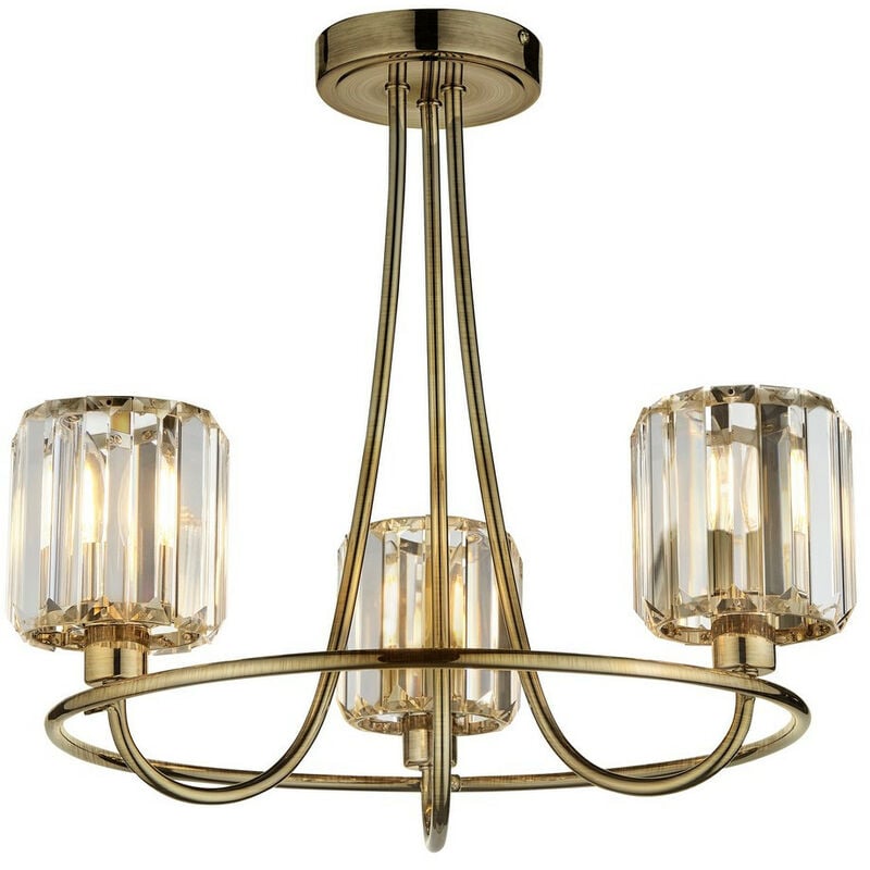 Endon Berenice Lampada da soffitto semi-incasso a 3 luci con paralume in vetro multi-braccio in ottone anticato | Finitura: piastra in ottone anticato e vetro trasparente | Materiale: acciaio e vetro | Grado di protezione IP: IP20 | Proiezione: 41 cm | Diametro: 45,6 cm | Tipo di lampada: E14 | Numero di lampade: 3 | Lampadina inclusa: no | Dimmerabile: sì | Potenza (massima): 3 x 6 W