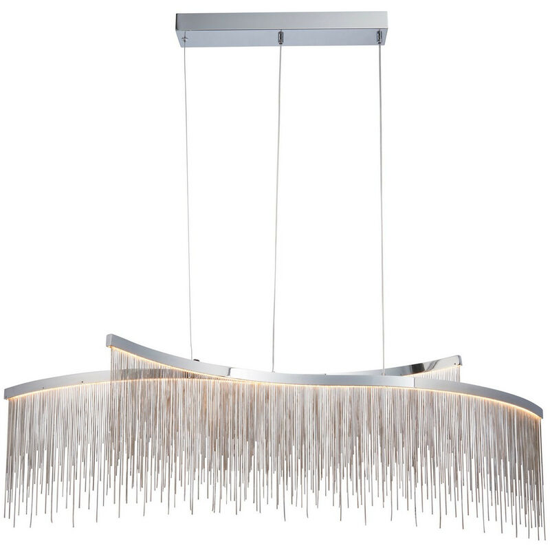 Endon Orphelia Lampada a sospensione a doppia barra curva a LED con catena in argento fine, effetto cascata, cromo lucido, bianco caldo | Finitura: placca cromata e catena effetto argento | Materiale: lega di alluminio e acciaio | Altezza minima (cm): 60,00 | Altezza massima (cm): 182.00 | Lunghezza (cm): 118,00 | Profondità (cm): 25,00 | Tipo di lampada: LED INTEGRATO | Numero di luci: 1 | Grado IP: IP20 | Kelvin: 3000 | Lumen: 3511 | Dimmerabile: Non dimmerabile | Lampadina inclusa: Sì | Potenza (max): 31,2 W | Peso (kg): 2,57