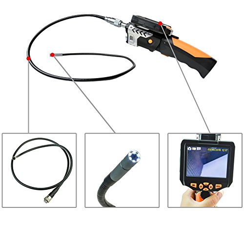 Endoscopio CrazyFire da 1 m cavo a serpente da 8.2 mm di diametro, boroscopio con videocamera e monitor LCD da 8,9 cm, 1 torcia CREE LED, fotocamera da 300.000 pixel per Automotive/elettrico/ispezione tubi ecc., NTS200-5M