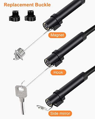ACCESSORI UTILI: Il nostro endoscopio viene fornito con accessori aggiuntivi [cappuccio protettivo, magnete, gancio], che possono aiutarti a rimuovere facilmente piccoli oggetti da aree difficili da raggiungere. Dotato di relativi accessori, gancio, calamita, che può adattarsi a svariati ambienti.