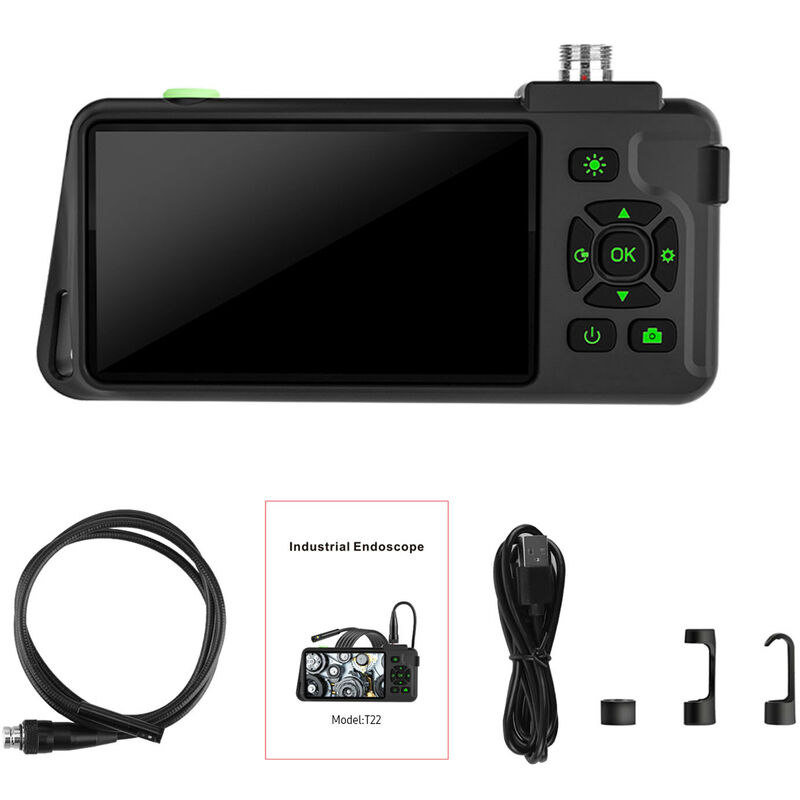 Questo endoscopio supporta la fotografia o la registrazione video con un solo pulsante, adatto per l'ispezione e la manutenzione, e la fotocamera è dotata di luci ausiliarie, che possono essere utilizzate anche in ambienti bui. Caratteristiche: 1. Schermo da 4,5 pollici: lo schermo a colori IPS da 4,5 pollici non solo mostra colori naturali e saturi, ma presenta anche immagini nitide da qualsiasi angolo di visione dello schermo. 2. Immagini chiare e amp;