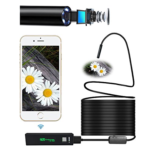 Endoscopio Wifi, Umiwe Senza Fili Endoscope Borescope Telecamera di Ispezione Impermeabile Semi-rigida 1200HD Wifi con Telecamera a Serraggio CMOS a 8 Megapixel con 8 LED Registrabili per Sistemi Andr (10m)