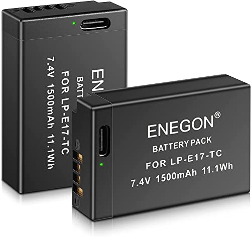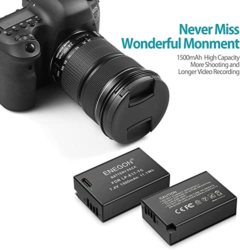 ENEGON LP-E17 Batterie a ricarica diretta tipo C 1500mAh (2 Pezzi) per Canon Rebel SL2,T6i,T6s,T7i, EOS M3,M5,M6, EOS 200D,250D, 77D, 750D, 760D, 800D, 8000D, KISS X8i, RP, Fotocamera reflex digitale