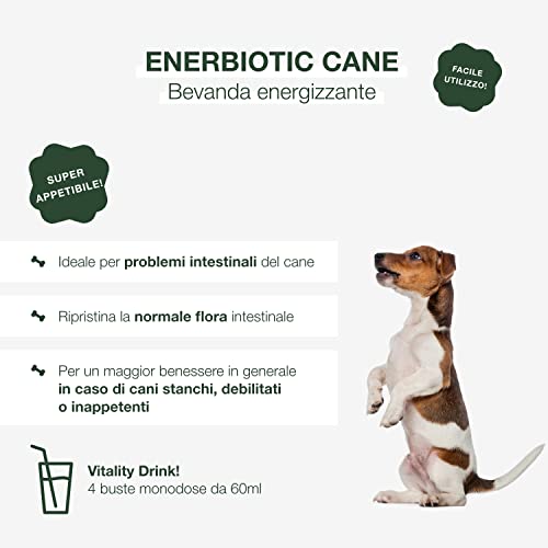 Enerbiotic - Bevanda Energizzante Prebiotica per Cani - per Problemi Intestinali del Cane, Ripristina la Normale Attività della Flora Intestinale - Elevata Appetibilità - 4 Buste Monodose da 60Ml
