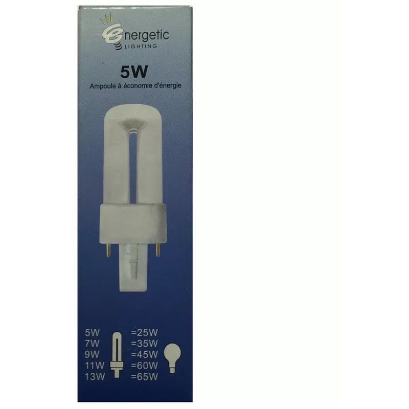 Lampadina a risparmio energetico 80% circa - Lunghezza = 10,5cm - lunga durata - G23 - 5W = 25W - 50hz 180mA 230V.