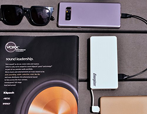 Energizer 10000mAh power bank with USB Type C Cable for Huawei P20 Pro/Mate 20 Pro, Samsung Galaxy S9 with extra USB A (2.4A) for other devices