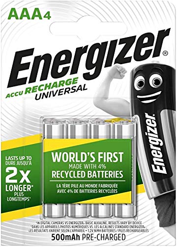 Energizer, batterie ricaricabili NiMH AAA, universali, 500 mAh, 1500 cicli, precaricate, AAA UNH12BP;