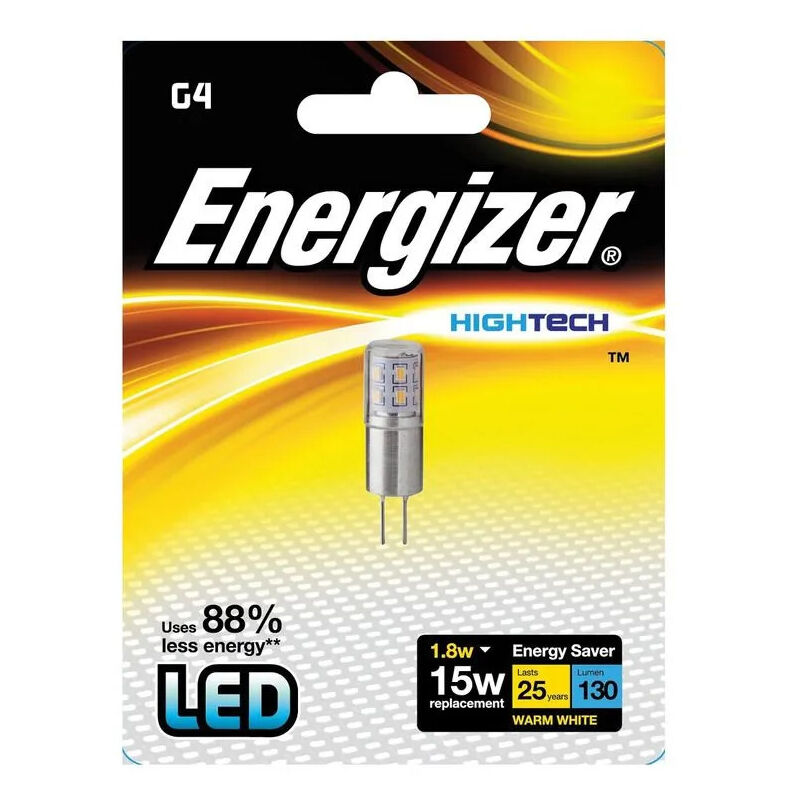 Lampadina LED a capsula G4, 130 lumen, 1.8w/5w. Lampadina LED CAPS. G4 200LM 2.2W/20W 2700K ENERGIZER BL1 / Tipo di sorgente luminosa: LED/ Potenza nominale (in W): 2.2W/ Potenza equivalente (in W): 20W/ Durata nominale (in h): 15000h/ Flusso luminoso (lumen): 200LM/ Tipo di base: G4/ Temperatura di colore (in Kelvin): 2700K/ Indice di resa del colore (CRI): >80/ Forma: CAPS.