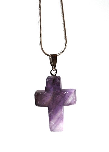 Energy Reiki Charged ametista cristallo ciondolo a forma di croce con catenina in argento (meravigliosamente regalo)