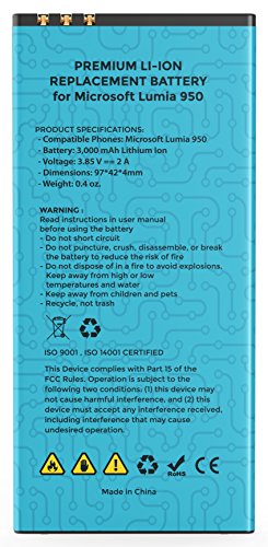 Tutti i vantaggi Plus una ricarica rapida di batteria 30 giorni soddisfatti o rimborsati: il Lumia 950 compatible, certificato CE e RoHS, e supportato da una garanzia di 12 mesi.