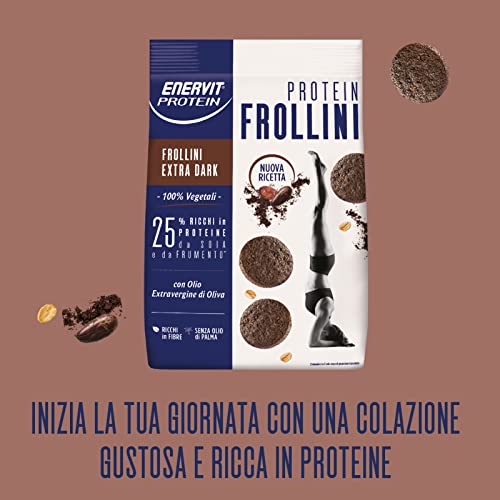 Enervit, Frollini Extra Dark, 100% Vegetali, Ricchi di Proteine, per Mantenere il Tono Muscolare, con Olio Extravergine di Oliva, Cacao, Soia e Frumento, Senza Olio di Palma, Sacchetto da 200 Grammi
