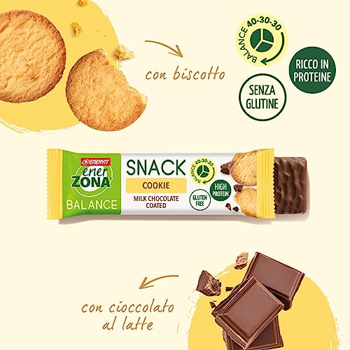 Enervit, Snack Cookie, Barretta da 33 Grammi, con Granella di Biscotti e Cioccolato Fondente, Enervit Protein Bar con Proteine del Latte, Barrette Enerzona 40-30-30, Senza Glutine