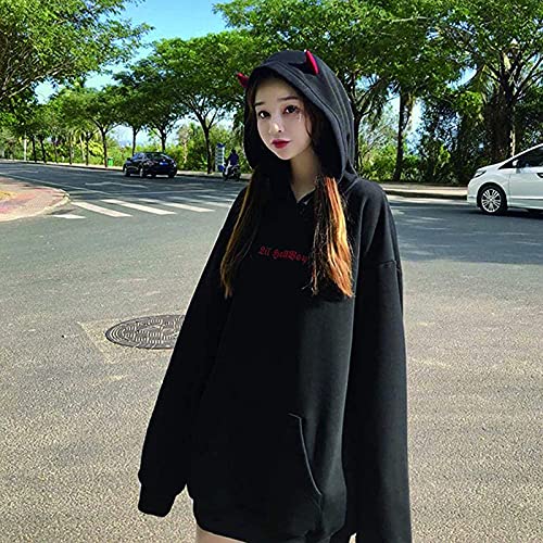 Enfei Felpa con Cappuccio da Donna Manica Lunga Allentata Casual con Cappuccio Devil Wing Felpe con Cappuccio