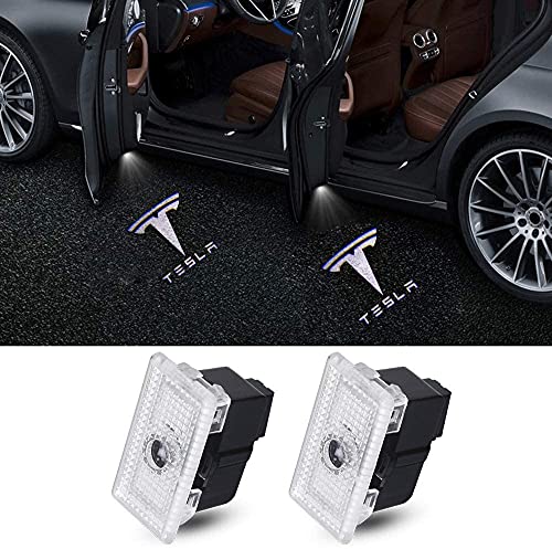 ENFILY 4 pezzi Tesla Model 3 / Y/S/X Luci a LED per pozzanghera, portiera dell'auto LED Logo proiettore Luci per pozzanghere Luce di benvenuto Ombra fantasma Accessori (2Pcs)