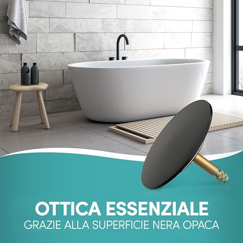 Engelbach Tappo per vasca da bagno universale - Tappo per vasca da bagno in acciaio inox con doppia guarnizione - tappo per vasca da bagno universale in nero opaco