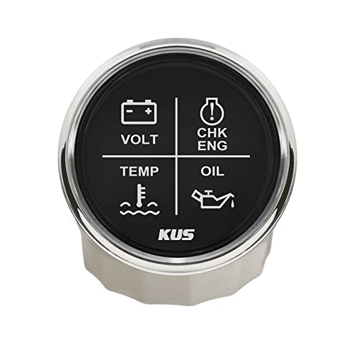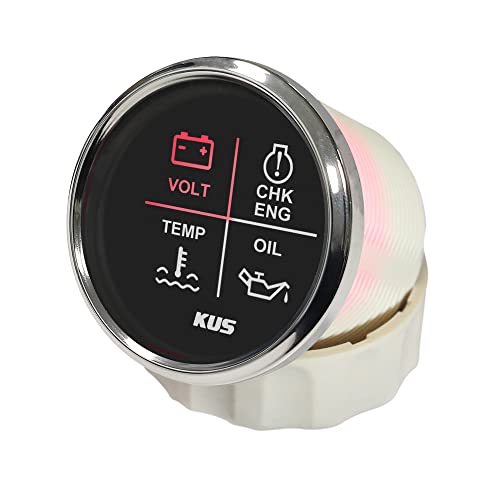 KUS 4 LED Engine Alarm gauge Meter Volt Water Temp oil pressione Chk ENG 52mm 12V/24V