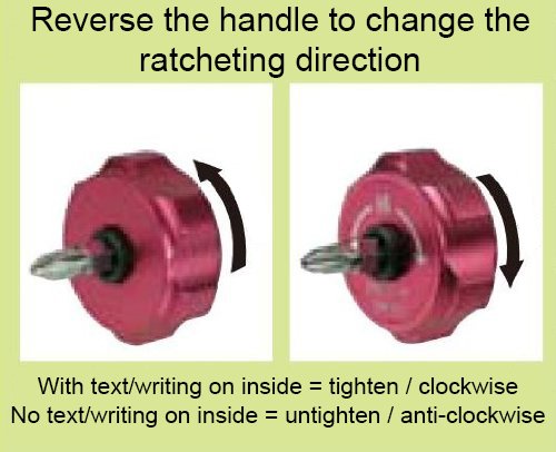 Cacciavite a basso profilo (manico corto) con meccanismo a cricchetto.
