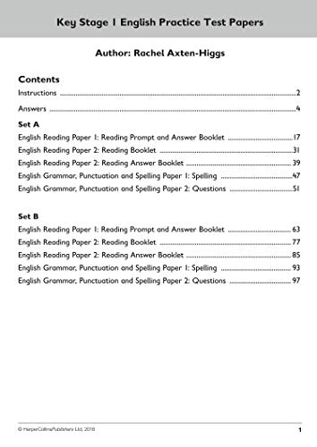 KS1 English Reading, Grammar, Punctuation and Spelling SATs Practice Test Papers: for the 2020 tests (Collins KS1 SATs Practice)