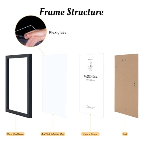 ENGLORY Cornice portafoto in legno nero, formato A2, set da 1 pezzi, 42 x 59,4 cm, con vetro Plexi anteriore, per certificati, immagini, poster, quadri, montaggio a parete per decorazione da parete