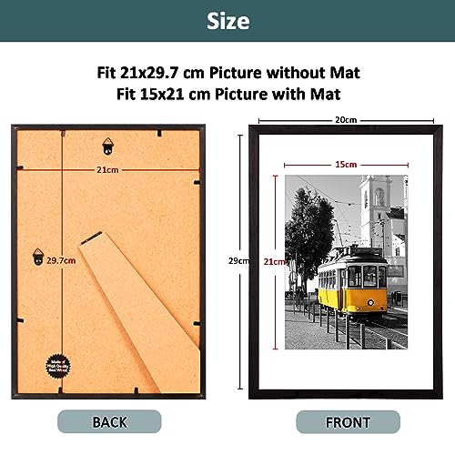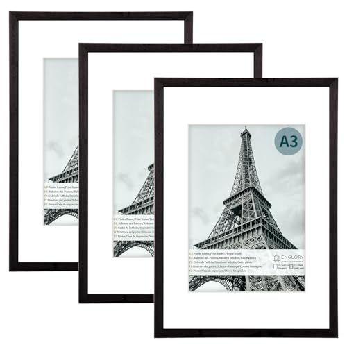 ENGLORY Set di 3 cornici portafoto in legno nero, formato A3, 29,7 x 42 cm, con vetro Plexi anteriore, per certificati, immagini, poster, quadri, montaggio a parete per decorazione da parete