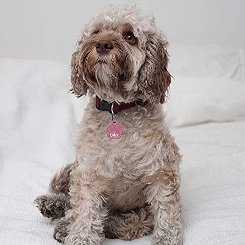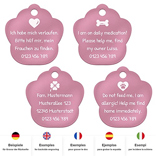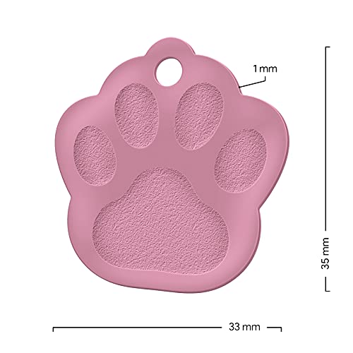 ENGRAVO Medaglietta cane con Incisione per Cani. Targhetta Cane a Forma di Zampa di Colore Rosa e 2 portachiavi gratuiti. progetta il tuo ora medaglietta cane personalizzata!
