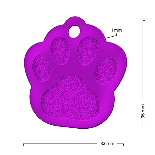 ENGRAVO Medaglietta cane con Incisione per Cani. Targhetta Cane a Forma di Zampa di Colore Viola e 2 portachiavi gratuiti. progetta il tuo ora medaglietta cane personalizzata!