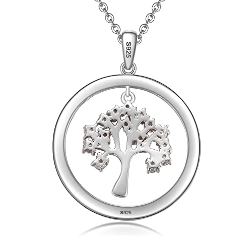 ENGSWA Collana Argento 925 Donna Incisione Ciondolo Albero della Famiglia Regalo Mamma Madre Moglie Nonna