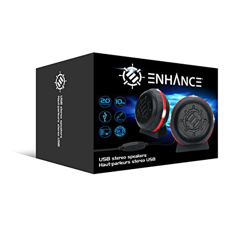ENHANCE Altoparlanti per Computer a LED per Giochi con Subwoofer, Potenti Driver da 5 W e Controllo del Volume in Linea - Alimentazione USB 2.0, Connessione da 3,5 mm per PC - Rosso