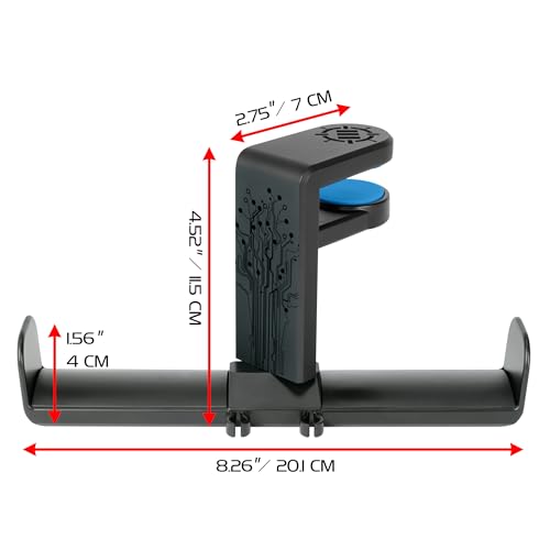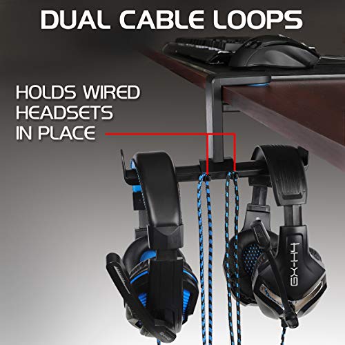 ENHANCE Supporto per Doppia Cuffia da Gioco per PC - Gancio da Scrivania a Clip con Rotazione Regolabile di 360, Morsetto da Scrivania e Organizer per Doppi Passacavi con Cuscinetti in Silicone