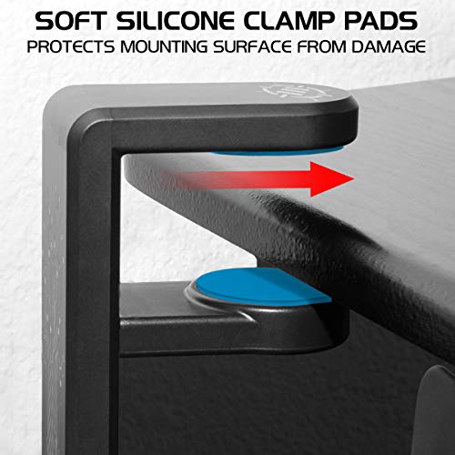 VESTIBILITÀ UNIVERSALE E SICURA: I morsetti si fissano su scrivanie spesse fino a 40 mm e strette fino a 10 mm per una vestibilità quasi universale per la maggior parte delle configurazioni