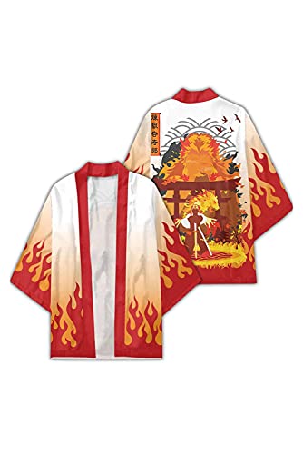 Enhopty Kimetsu no Yaiba Kyojuro Rengoku Kimono Cappotto Giacca, Carnevale Halloween Cosplay Costume C/Arancione S
