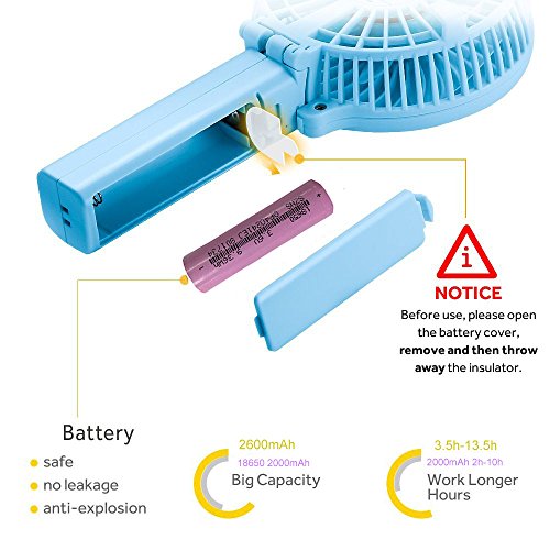 Piccolo, leggero e compatto. Una mano per il raffreddamento - Mini ventilatore tenuto. Con prestazioni 18.650 batteria standard internazionale con elevata capacità offre lunga durata e forte.