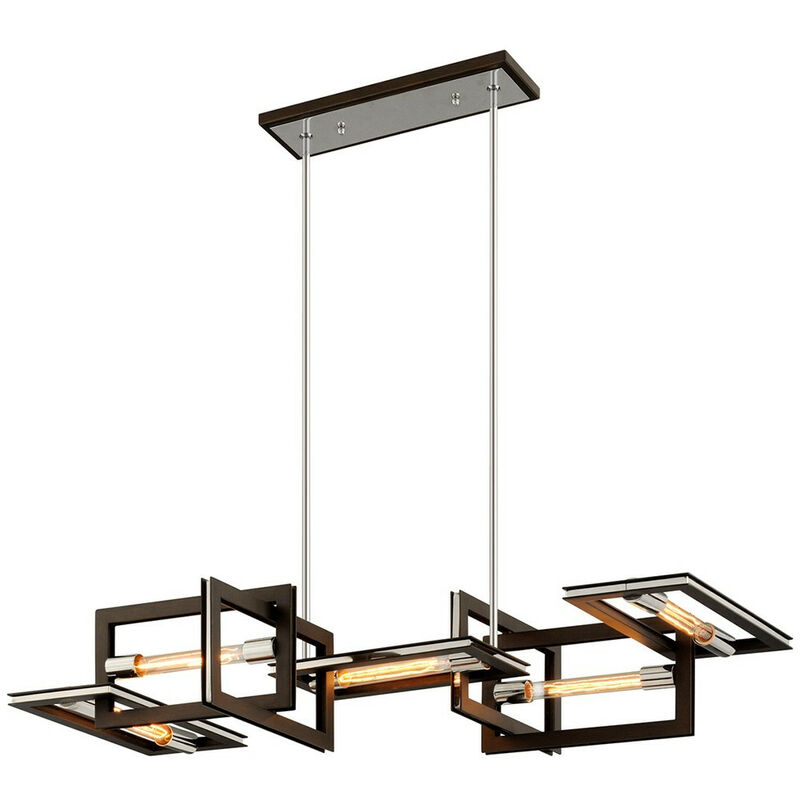 Enigma Bronzo lineare a 5 luci con acciaio inossidabile lucido | Finitura: Bronzo Con Acciaio Lucido | Materiale: ferro lavorato a mano | Grado di protezione IP: IP20 | Altezza: 28,6 cm | Altezza minima: 31,1 cm | Altezza massima: 152,4 cm | Lunghezza: 110,5 cm | Larghezza: 78,7 cm | Tipo di lampada: E27 | N. di lampade: 5 | Lampadina inclusa: no | Dimmerabile: Sì - Sono necessarie lampadine dimmerabili | Peso: 14,97 kg | Potenza (max): 40 W