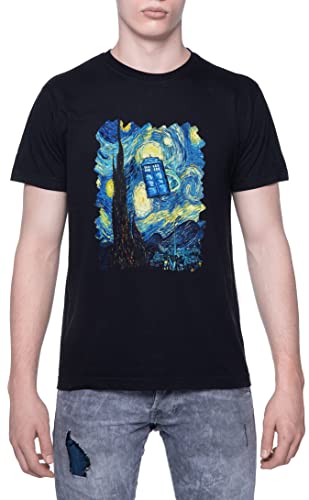 Enigmae Doctor Who Flying Public Call Box T-Shirt da Uomo Manica Corta Nero Men Black Tee 5XL
