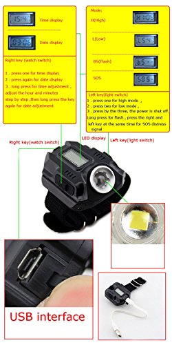 Enjoydeal - Orologio tattico con display LED Cree e torcia, ricaricabile, 1000 lumen
