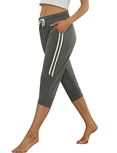 Enjoyoself Pantaloni Tuta Donna Sportivi con Coulisse Casual Pantaloni per Primavera Estate Pantaloni da Pigiama Yoga Jogging Capri Pants-Grigio-S